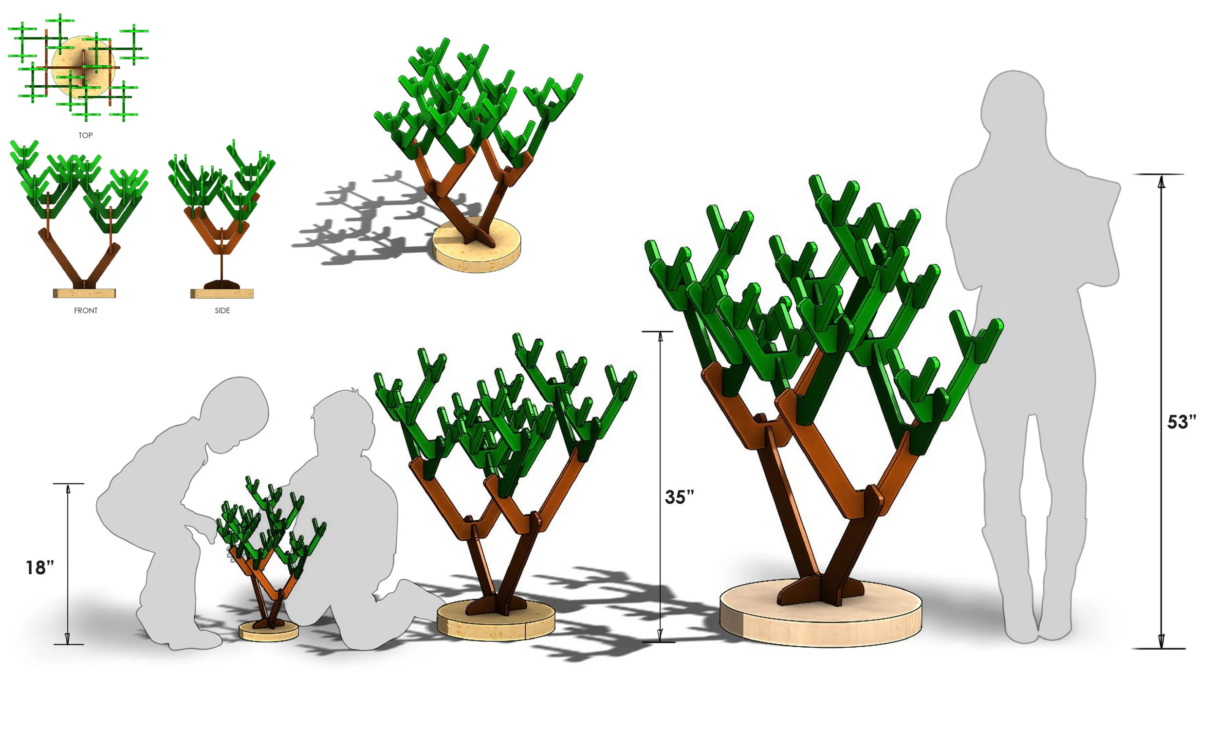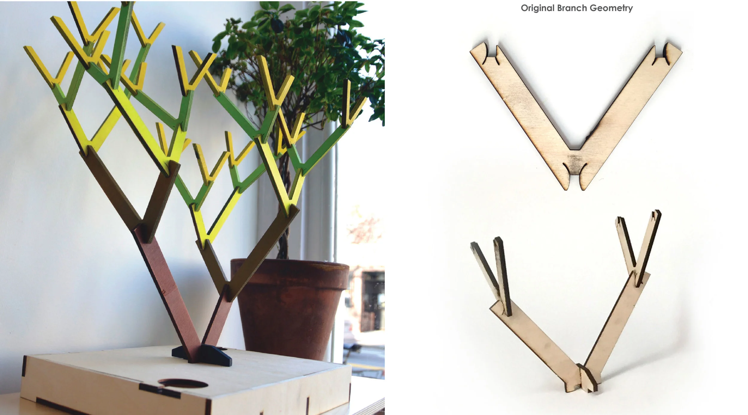 Working from the original design, we explored various branch profiles, fitting, and tolerances. The final result was a securely fitting asymmetric branch design with a new stable friction fit base.