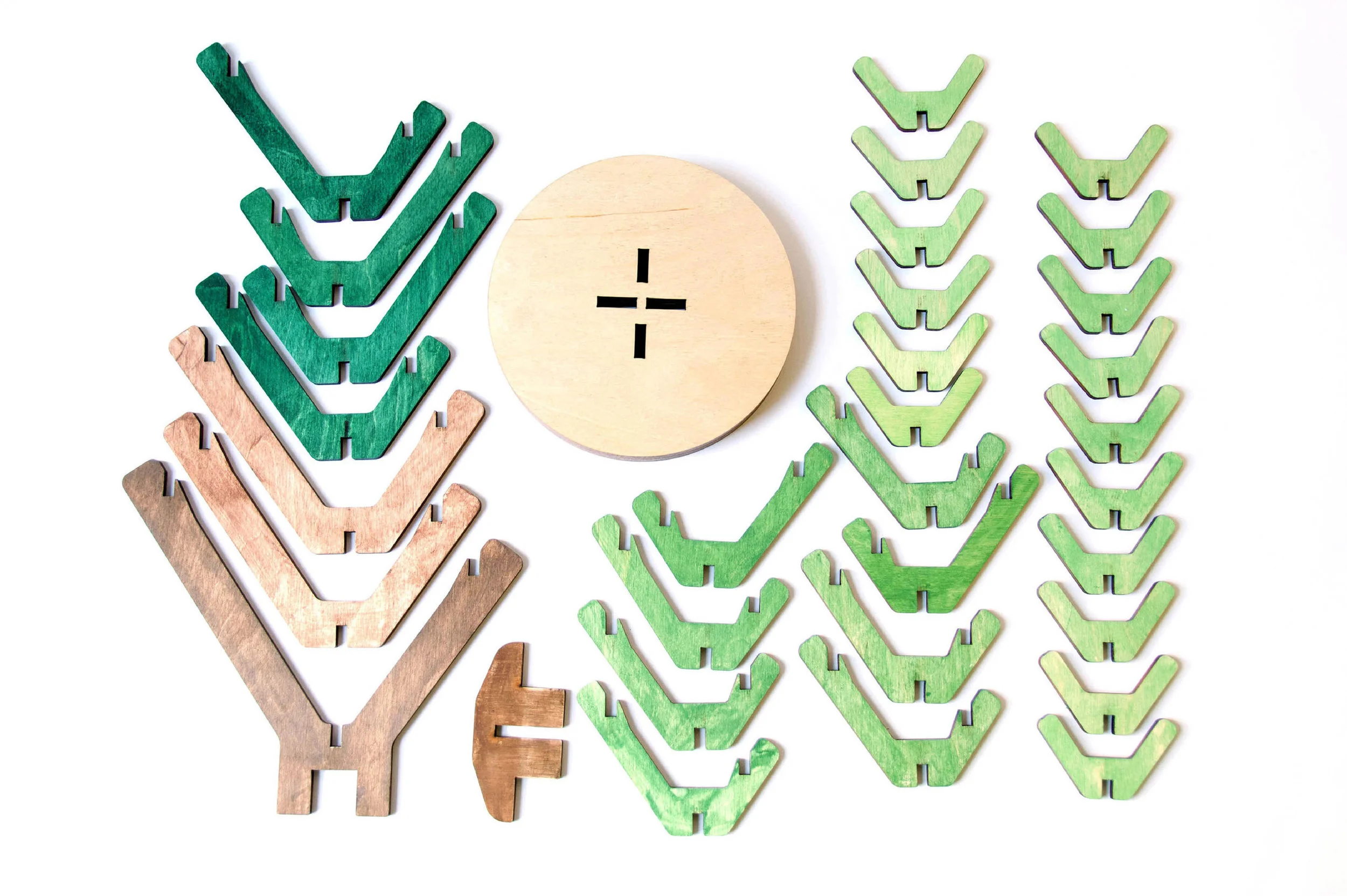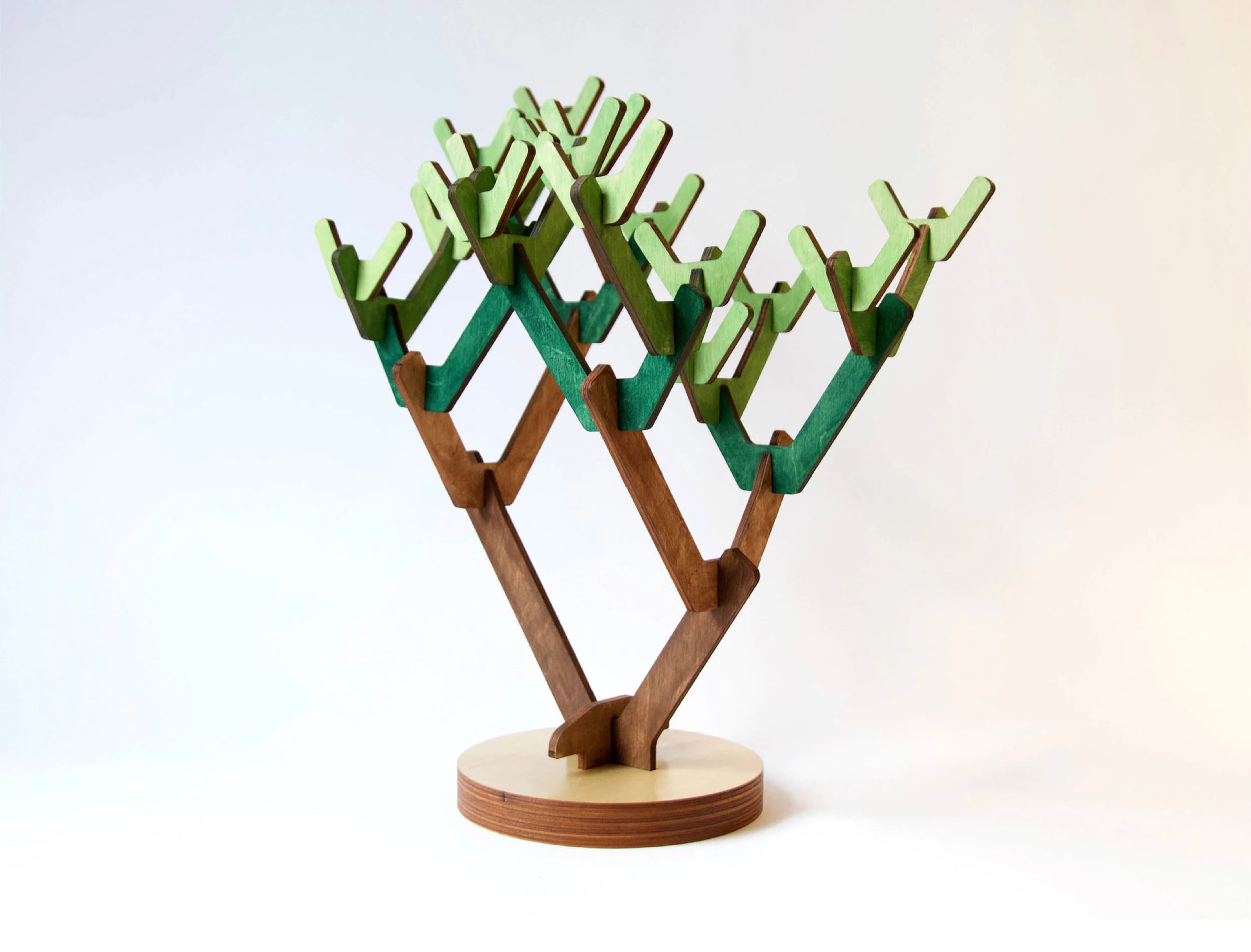 The “binary tree” toy introduces the child to the concept of a data tree structure. It also abstractly builds on the concepts of binary trees and exponential sequences. While the intent was there, the original design lacked strong fitting connections and nuanced form that would enable better play and aesthetic quality.