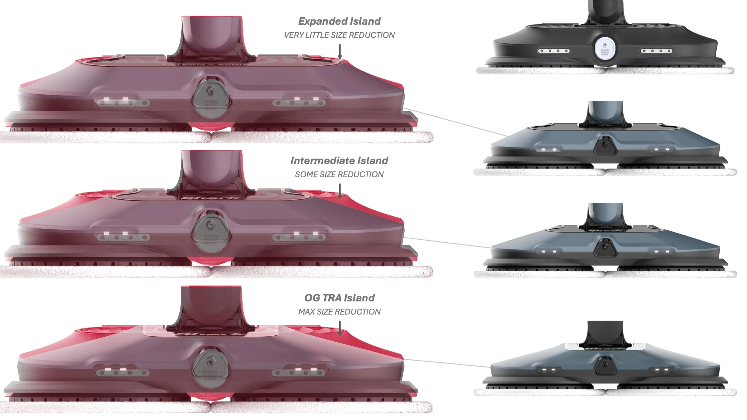 The internal structures and engineering components were optimized allowing ID to investigate top cover design variations. In the end, the team aligned to proceed with the “expanded island” with the smallest size reduction. It felt the most balanced, and allowed for a dominant billboard for branding and future embellishment opportunities.