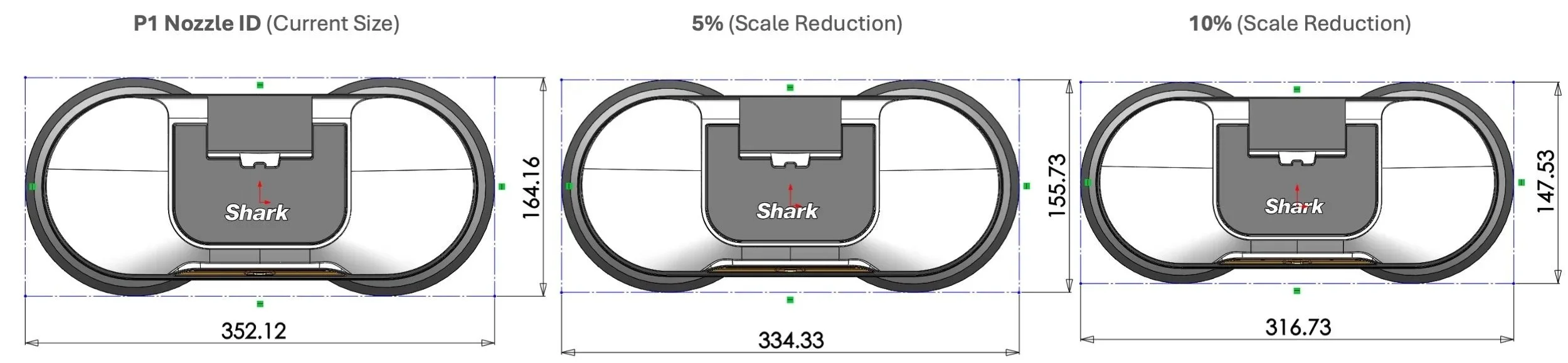 The P2 ID evolved seeking to keep the essence of the “wishbone” ID, while baking in the reality of engineering and performance requirements. The molded wand was not strong enough and wasn’t meeting our packaging requirements. The wand was updated to be a plugged in aluminum extrusion. The handle was optimized to balance the mechanical trigger with appropriate pull force. The swivel was updated for maneuverability and upright locking. These changes along with other finer design refinements led to a new scrubber look that spoke to some of the premium Shark cordless design language.This design is representative of what was proposed to leadership for TRA.