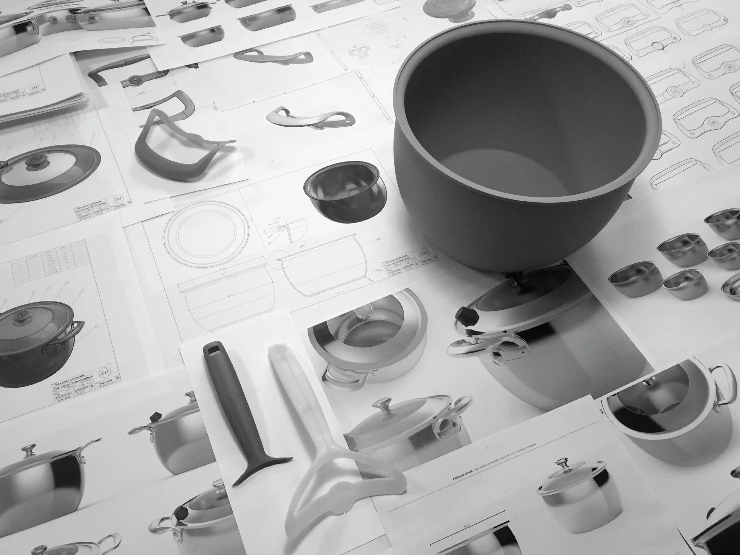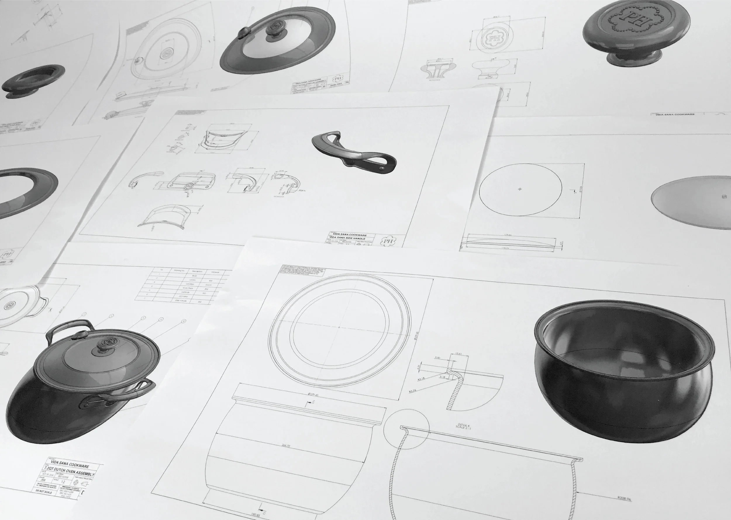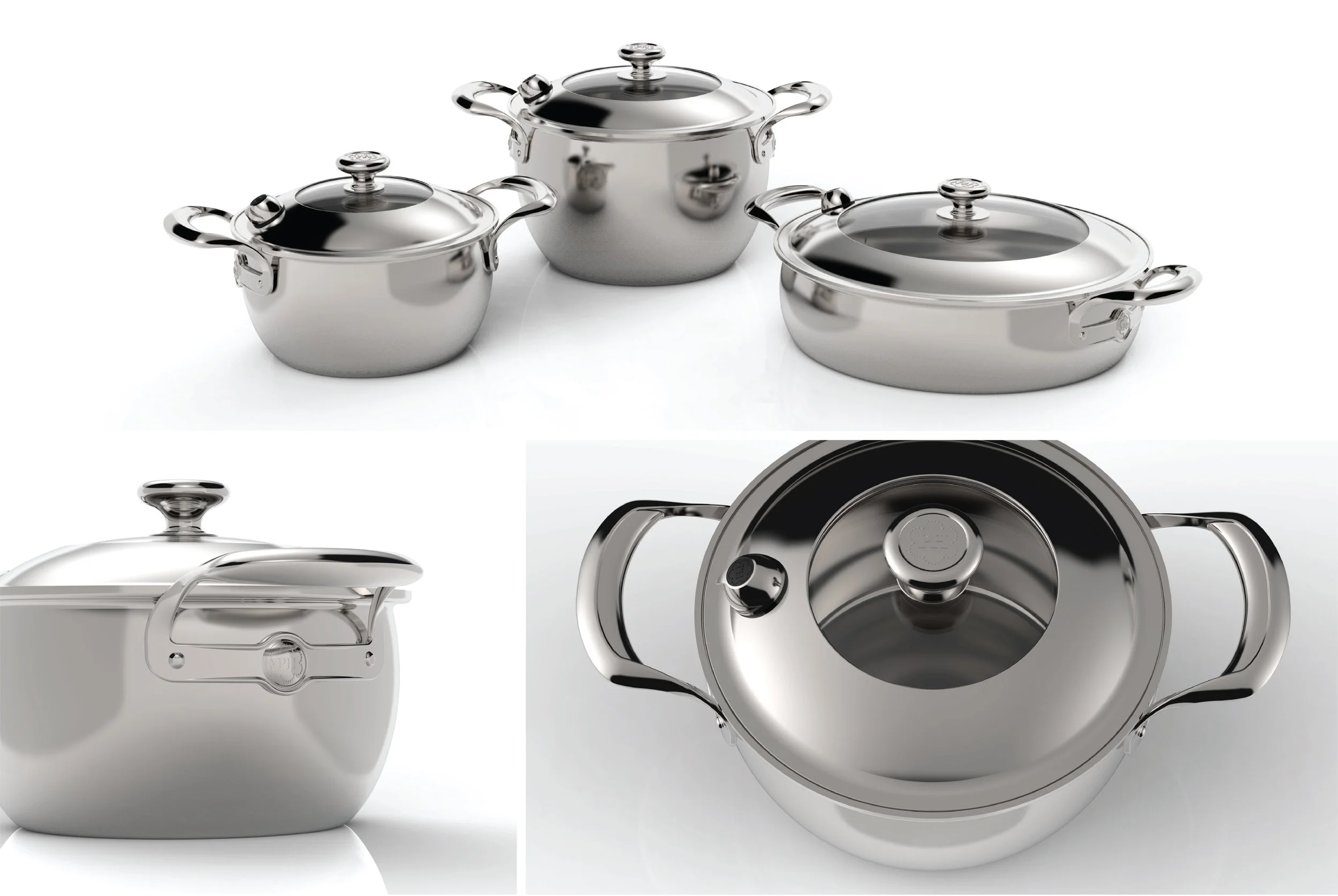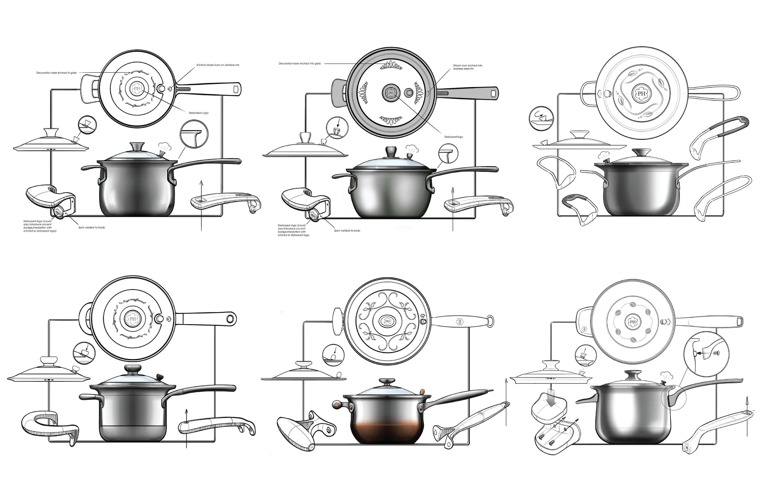 We generated “technical” renderings serving as marketing assets to show off the design, functions, and features of the new line of cookware.