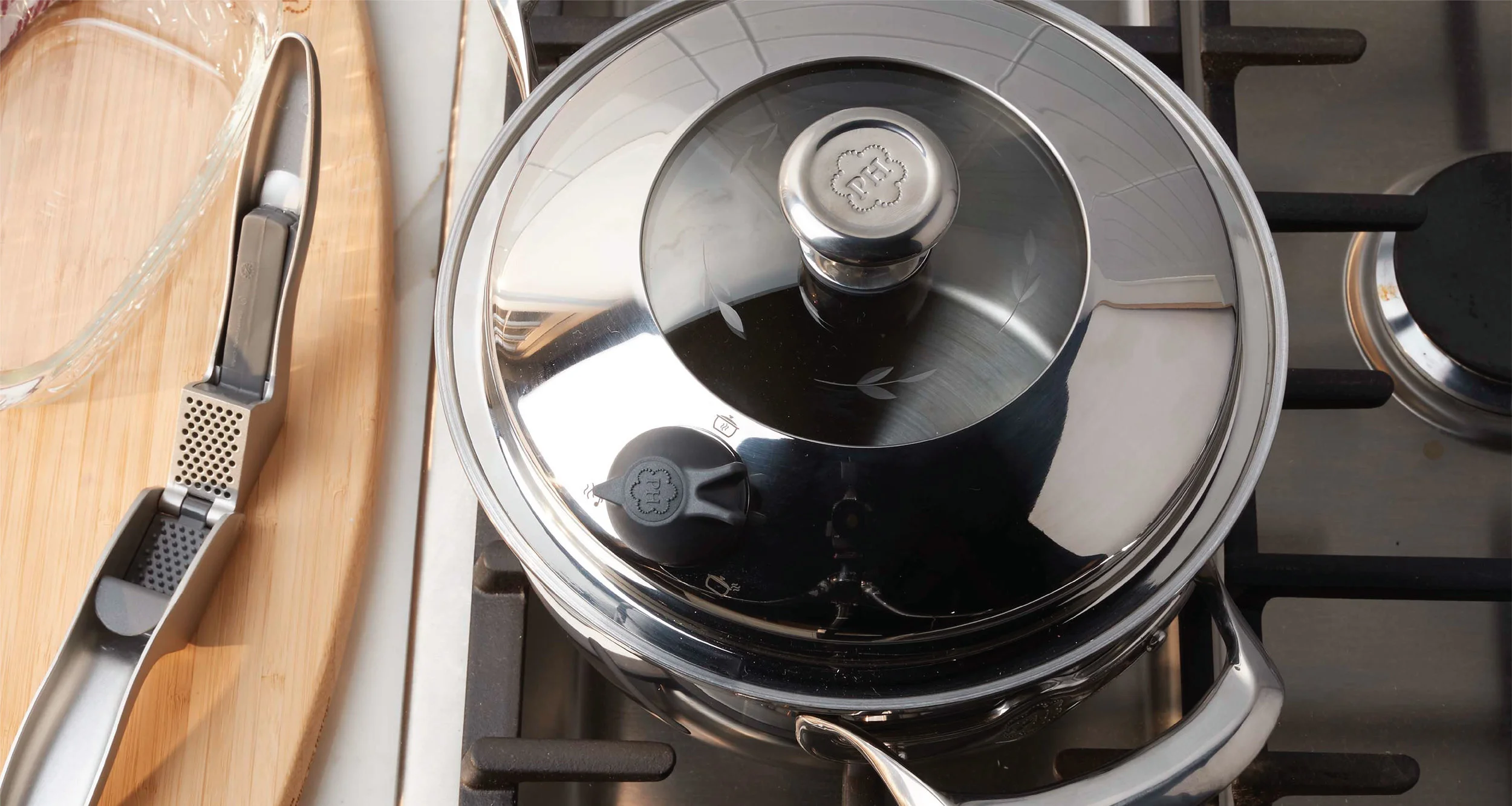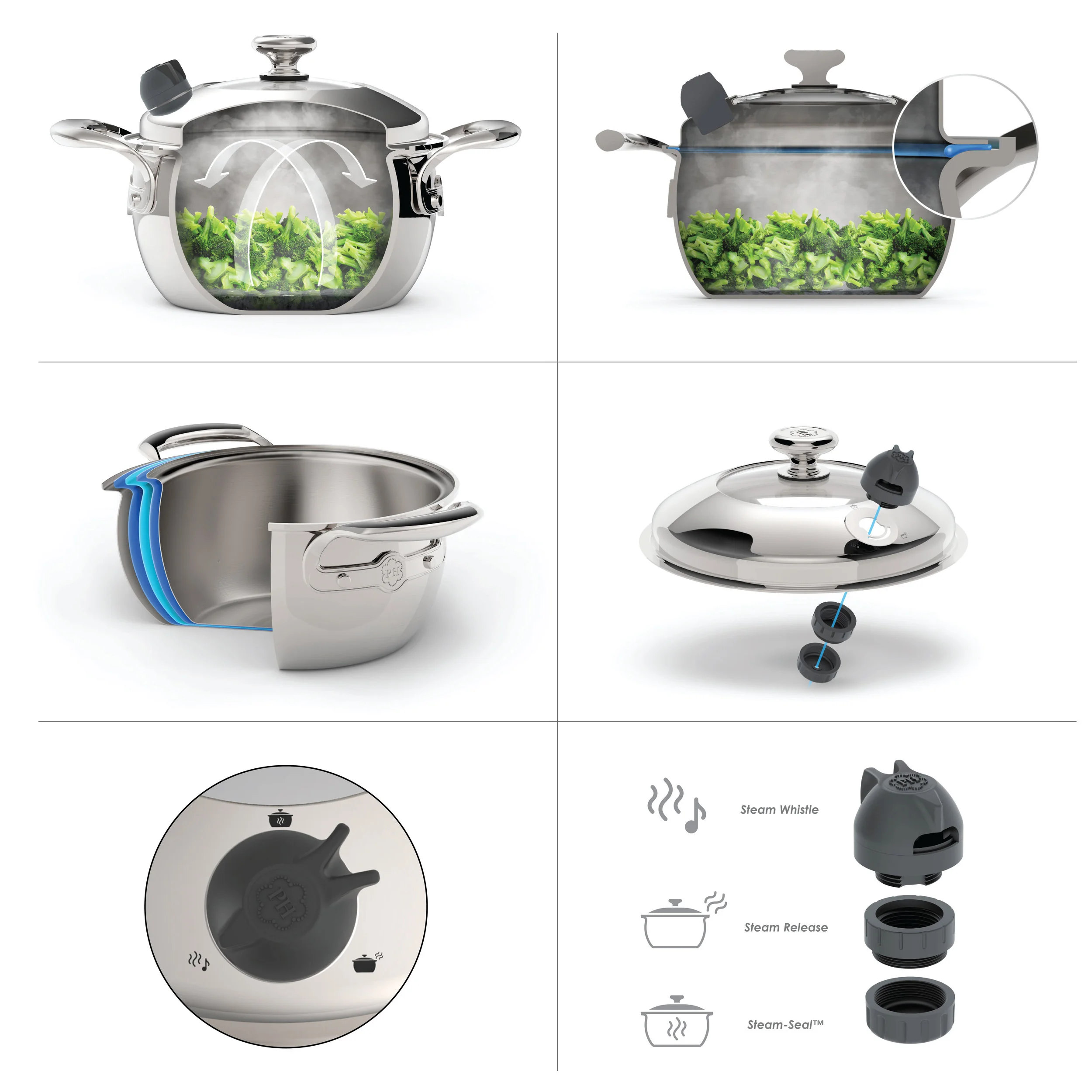 Introducing Princess House’s newest line of premium cookware, Vida Sana. The 5-ply construction, stainless steel cookware heats fast and evenly and provides you the option of healthy or traditional cooking. The nutri-steam™ valve combined with the steam-seal™ lid allow for greaseless cooking, which traps bold flavor & more nutrients in your vegetables and proteins. Developing the product from start to finish, we researched, sketched, modeled, and refined Vida Sana to be a robust, beautiful, and high functioning set of cookware.